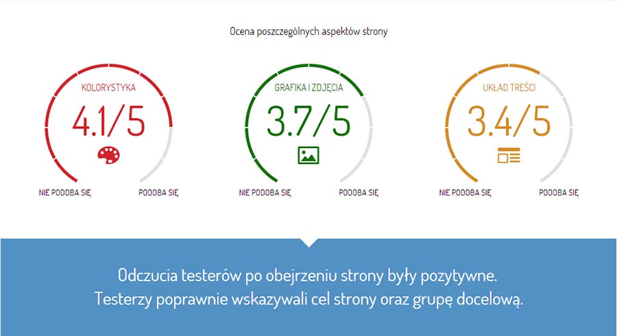 • Jak testerzy oceniają poszczególne aspekty- kolorystykę, grafiki, układ treści